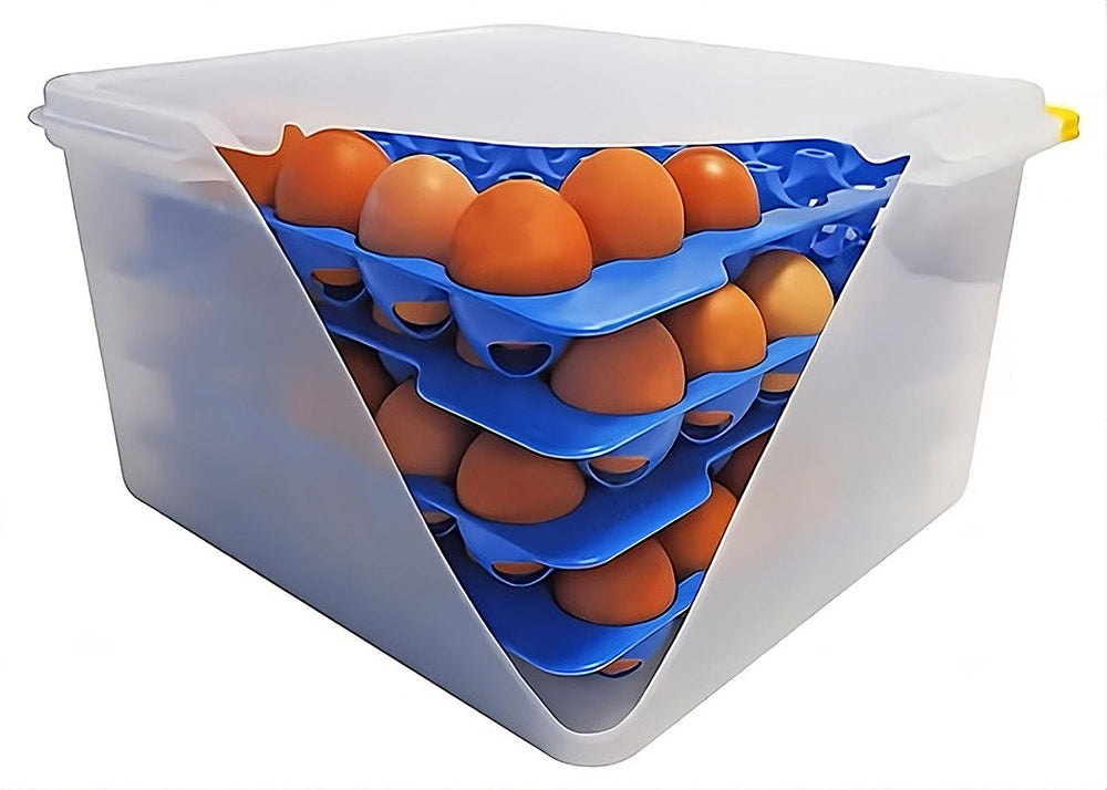 • [Delivery includes 8 trays 29x29 cm, usable for 3-4 levels of 30 eggs each in the container.]