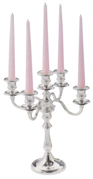 5-arm silver-plated candelabra is backordered and will ship as soon as it is back in stock.