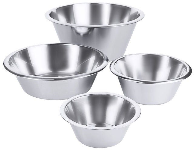 Stainless steel bowl 0.5-14 liters, flat conical shape - 0.5 is backordered and will ship as soon as it is back in stock.