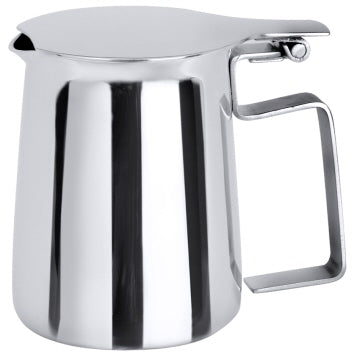 Stainless steel cream jug with lid is backordered and will ship as soon as it is back in stock.