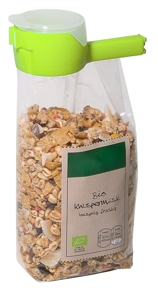 - Müsli etc.) kann dosiert und wieder verschlossen werden