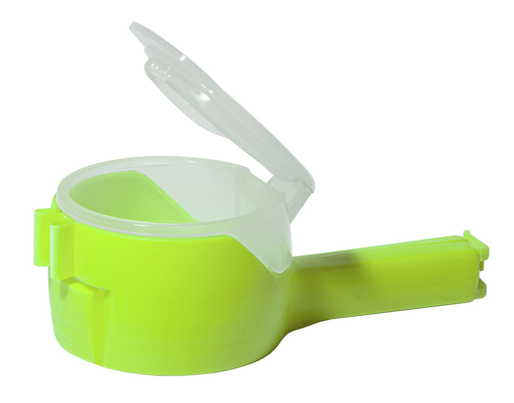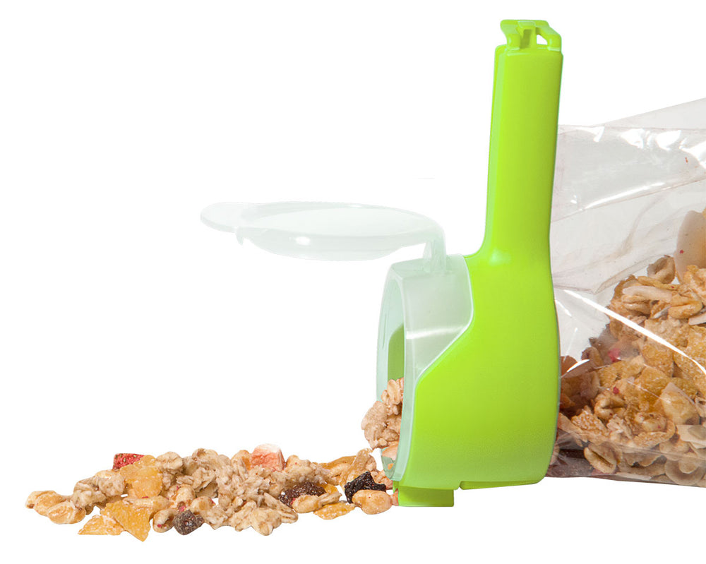 Beutelklammer grün rot mit verschließbarer Schütte ( 1 Stück )