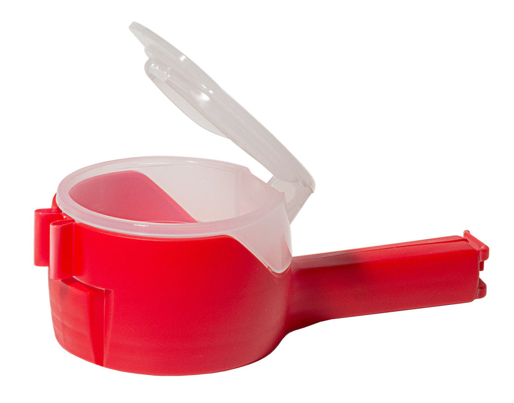Beutelklammer grün rot mit verschließbarer Schütte ( 1 Stück ) - Rot ist auf Lager und wird versandt, sobald es wieder verfügbar ist